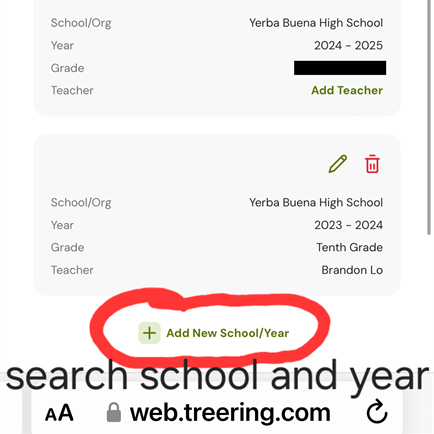 - Click the Add New School/Year