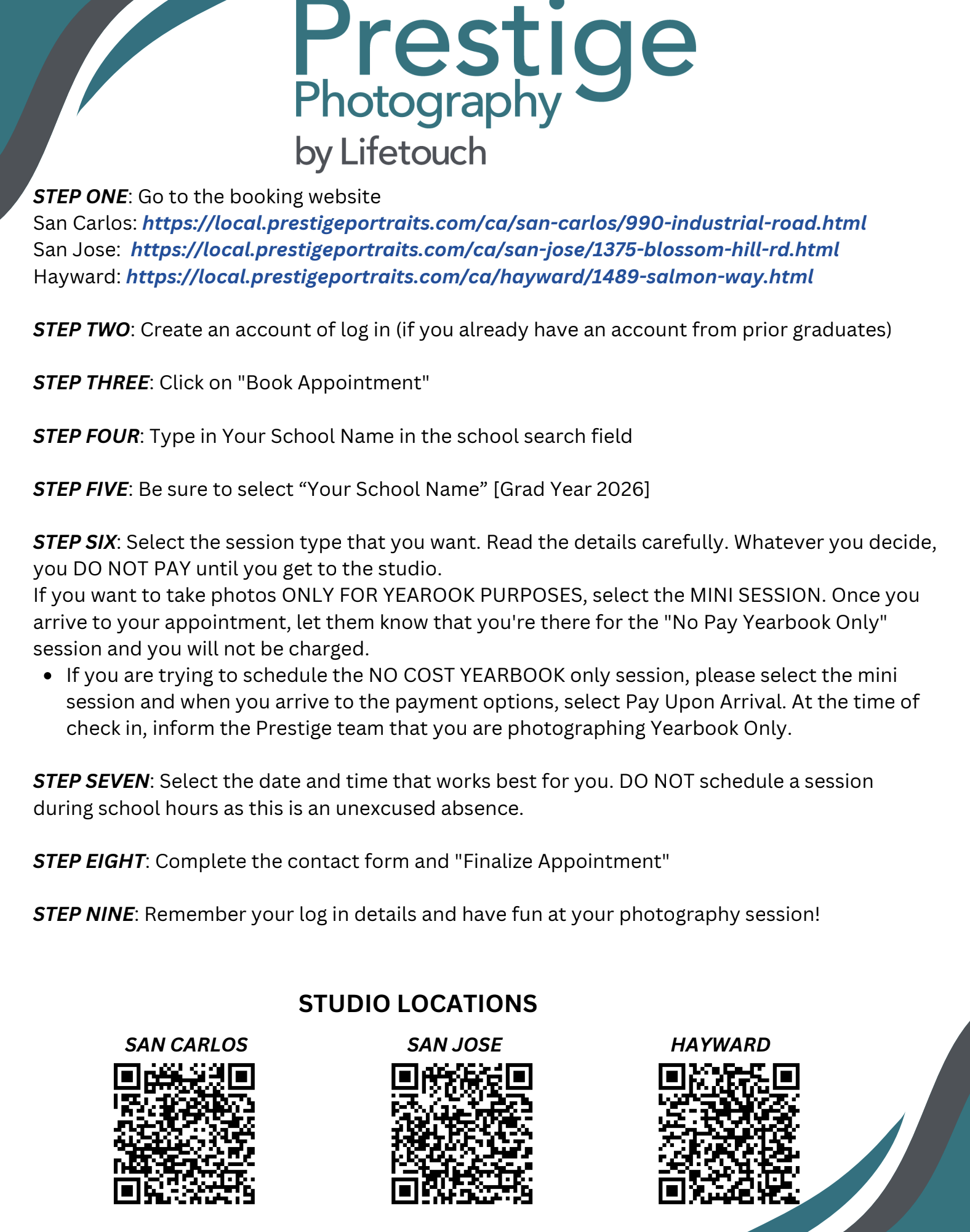 Hey Juniors! It is time to sign up for the senior portraits for the 2024 2025 school year. Please view the documents provided by Lifetouch to make your appointment.